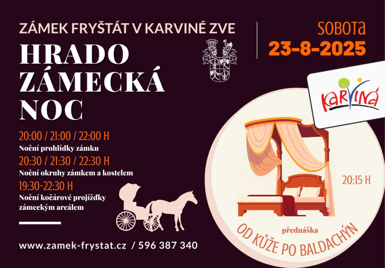 Zámecké ponocování jsme pro vás letos připravili na sobotu 23. srpna.Tradičně se můžete těšit na společné prohlídky zámku a kostela, které jsou v době večerní a noční přímo kouzelné. Jindy tak nevyniknou nádherné lustry i tajemná zákoutí obou památek jako právě v tuto pozdní dobu. Pro více info klikněte zde.